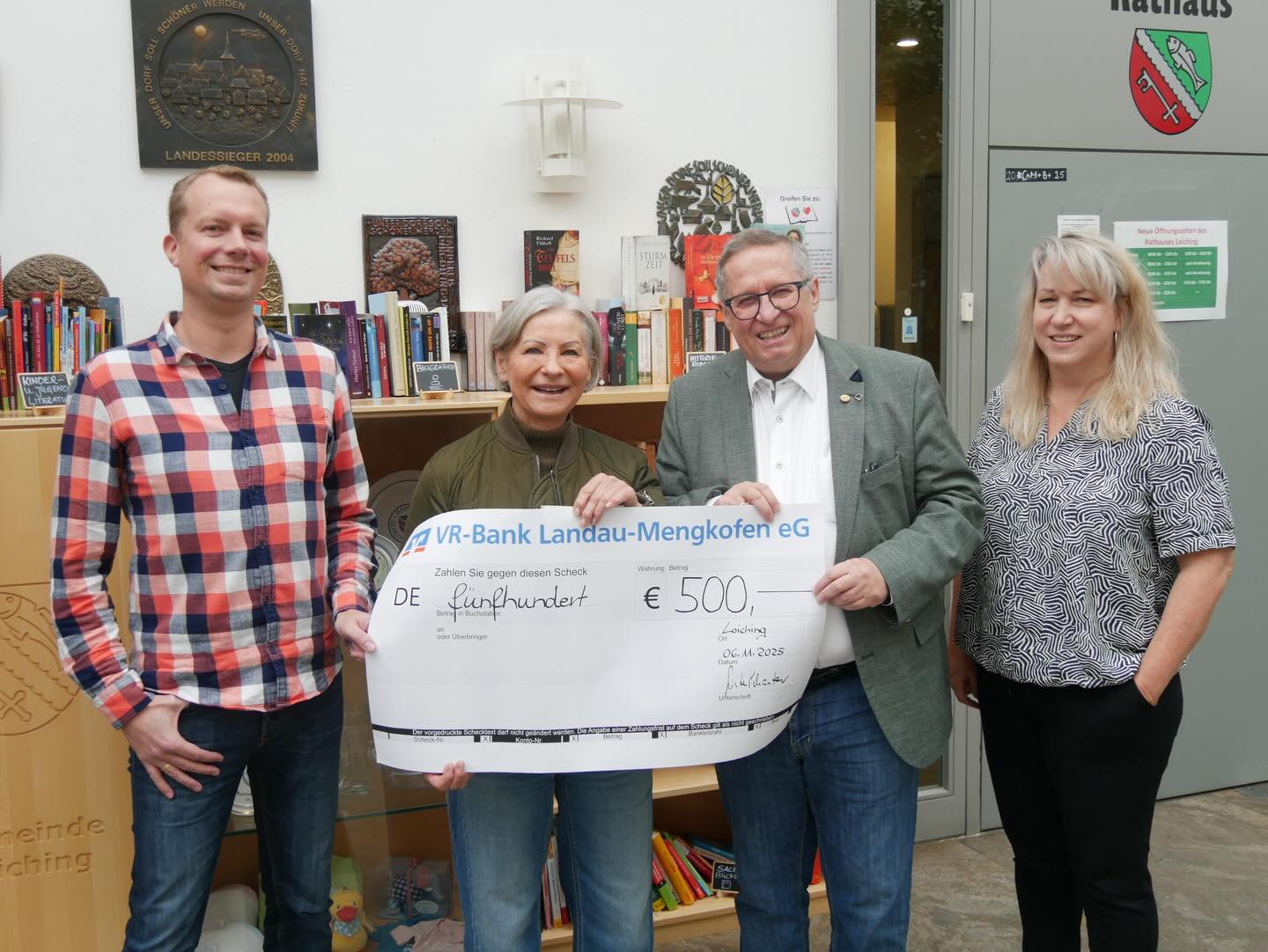 Kürzlich fand im Rathaus Loiching eine Spendenübergabe an die Kinderkrebshilfe Dingolfing-Landau-Landshut e.V. statt. Ulrike Eckhart, 1.Vorsitzende des Vereins, durfte den Spendenscheck von Bürgermeister Günter Schuster, Silke Zehentmeier und Florian Weiher in Empfang nehmen. Das Geld stammt aus dem Erlös der „Bücherbörse“, die im Foyer des Rathauses eingerichtet ist. Dort können sich die Gemeindebürger gegen eine kleine Spende Bücher mitnehmen. So kam die stolze Summe von 500 Euro zusammen, die an Frau Eckhart übergeben wurden. Sie bedankte sich recht herzlich für die Spende und berichtete über die aktuelle Arbeit des Vereins