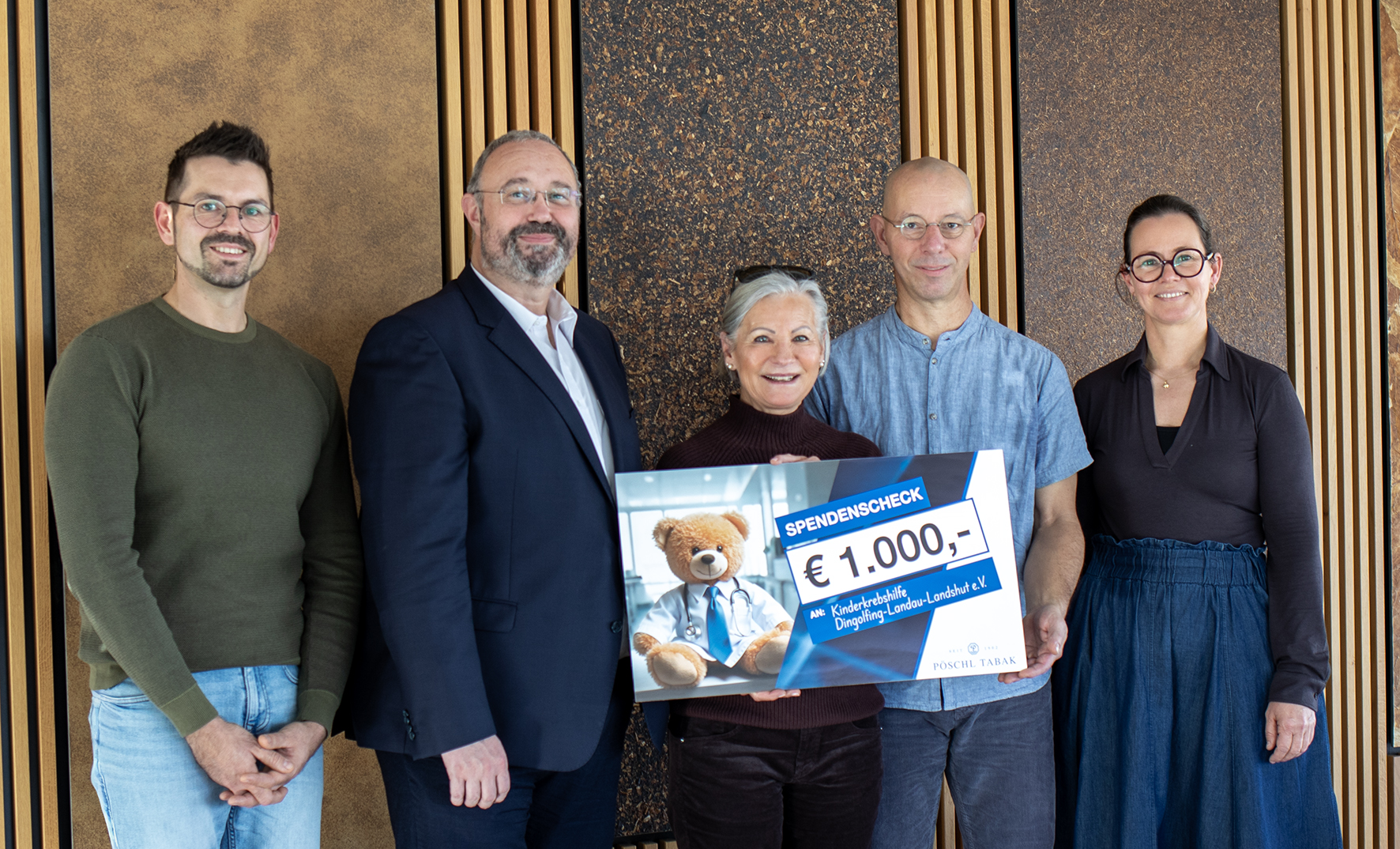 Dominique Riedel und Christian Gleißner, beide aus der Abteilung Technische Dienste, fahren für ihr Leben gerne mit dem Fahrrad. Während einer gemeinschaftlichen Tour kamen die beiden auf eine Idee: wir nehmen uns die legendäre Passstraße auf das Stilfserjoch vor und sammeln dabei Spenden für einen guten Zweck. Gesagt – getan. Im August dieses Jahres fuhren die beiden die 48 atemberaubenden Kehren und 1.869 Höhenmeter mit dem Fahrrad ab. Ziel der Radtour war das 2.758 m hohe Stilfserjoch, einer der höchsten befahrbaren Alpenübergänge und wohl die spektakulärste Rampe Europas. Pöschl Tabaks geschäftsführende Gesellschafterin Katharina Pöschl, belohnte den Einsatz der beiden mit einem Betrag in Höhe von 1.000€. Dieser wurde am 13.11.2025 an Frau Ulrike Eckhart, 1.Vorsitzende der Kinderkrebshilfe Dingolfing - Landau - Landshut e.V., übergeben. Die Kinderkrebshilfe betreut und unterstützt Kinder, die an Krebs erkrankt sind, sowie deren Angehörige.