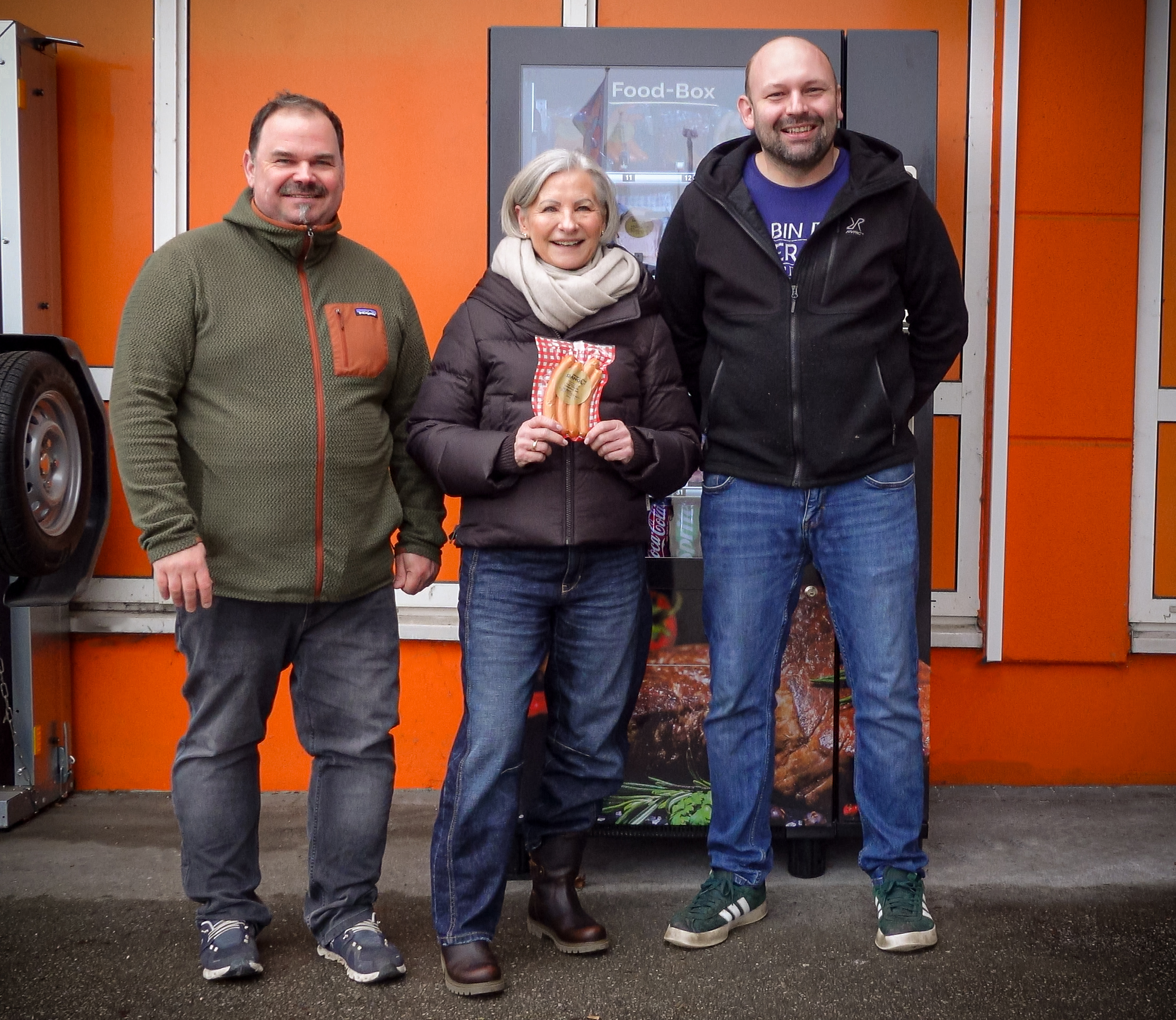 Der Metzger Maximilian Gangl und Thomas Atzberger von Wuid Media & Marketing betreiben gemeinsam den Fleisch- und Wurstautomaten Schmackomat beim Obi in Dingolfing und verbinden unternehmerischen Einsatz nun mit sozialem Engagement.