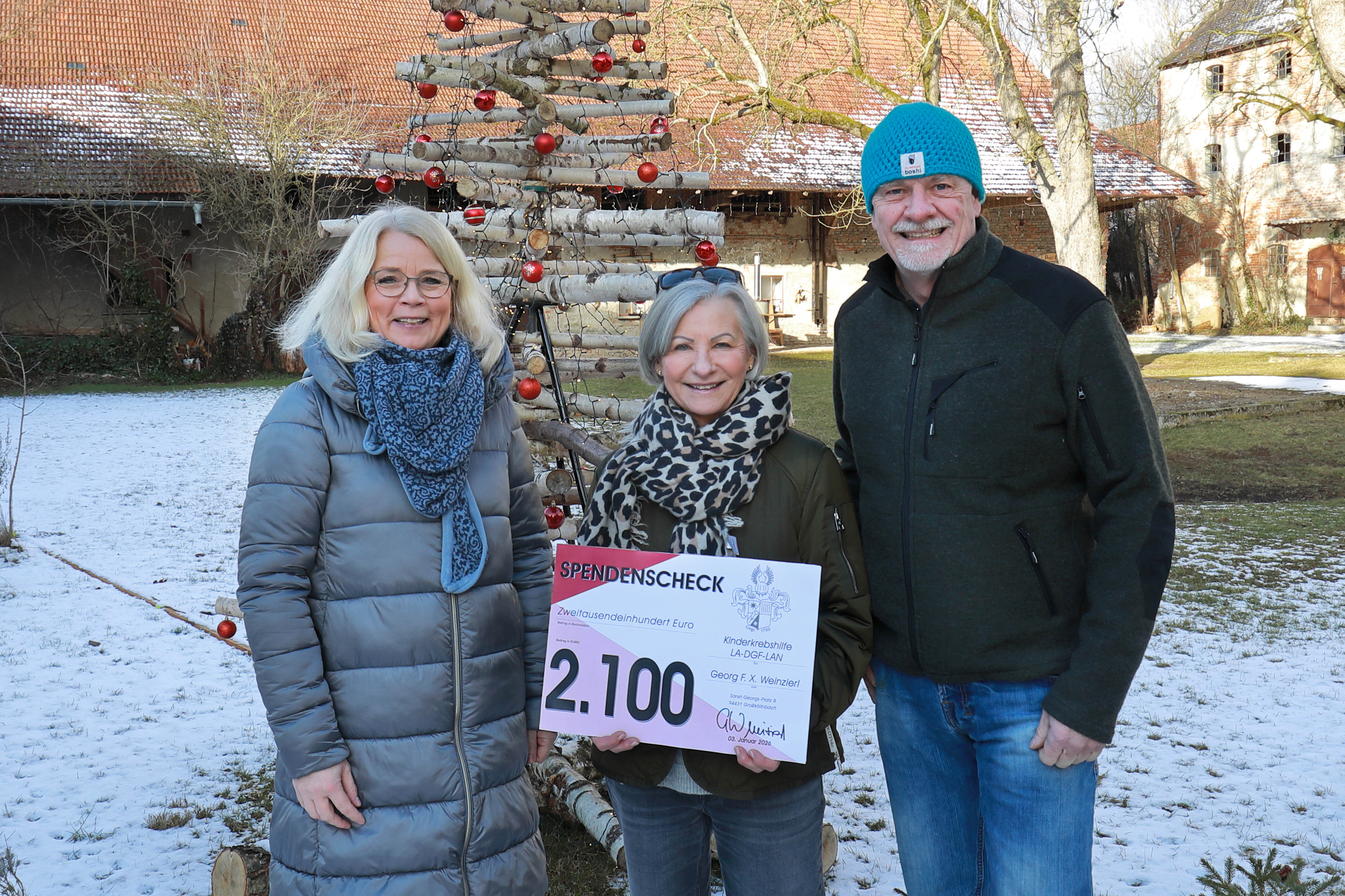 Geplant hatte Georg Weinzierl das Hofglühen als eine weihnachtliche Veranstaltung zugunsten der Kinderkrebshilfe Dingolfing-Landau-Landshut. Am 20. Dezember fand dieses Fest im Weinzierl-Anwesen in Großköllnbach statt. Die geladenen Gäste konnten in einer „Sposau“ ihre Spende abgeben. Letzten Samstag wurde nun die Summe von 2100 Euro an die Vorsitzende des Vereins, Ulrike Eckhart, übergeben. Ein Dankeschön für das Gelingen dieses Hoffestes richtete Georg Weinzierl an die Wirtsleute Anne und Lugge Hess und die Musiker „EGG“ Egon, Günther und Gerhard. Dank geht auch an den Kath. Männerverein Großköllnbach, Metzgerei Max Gangl, den Perchten D’Isar Rawuggerl für ihren gruseligen Auftritt sowie allen Helfern. Foto: Ulrike Eckhart (Mitte) von der Kinderkrebshilfe Dingolfing-Landau-Landshut e.V. nahm die Spende von Kiki Petri und Georg Weinzierl entgegen. Foto: Haas